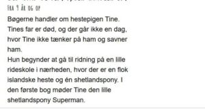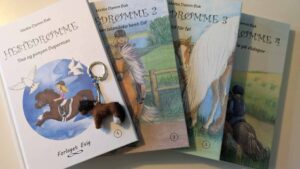VARE DER SÆLGES: Bogpakke med “Hestedrømme 1-4” samt en lille filthest, som forestiller “Superman”, som er hovedpersonen i den første bog. Kan læses selv af børn i 9-års-alderen og tidligere ved højtlæsning.